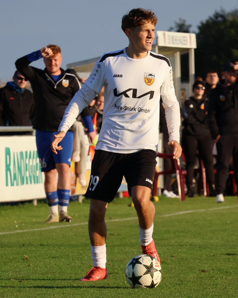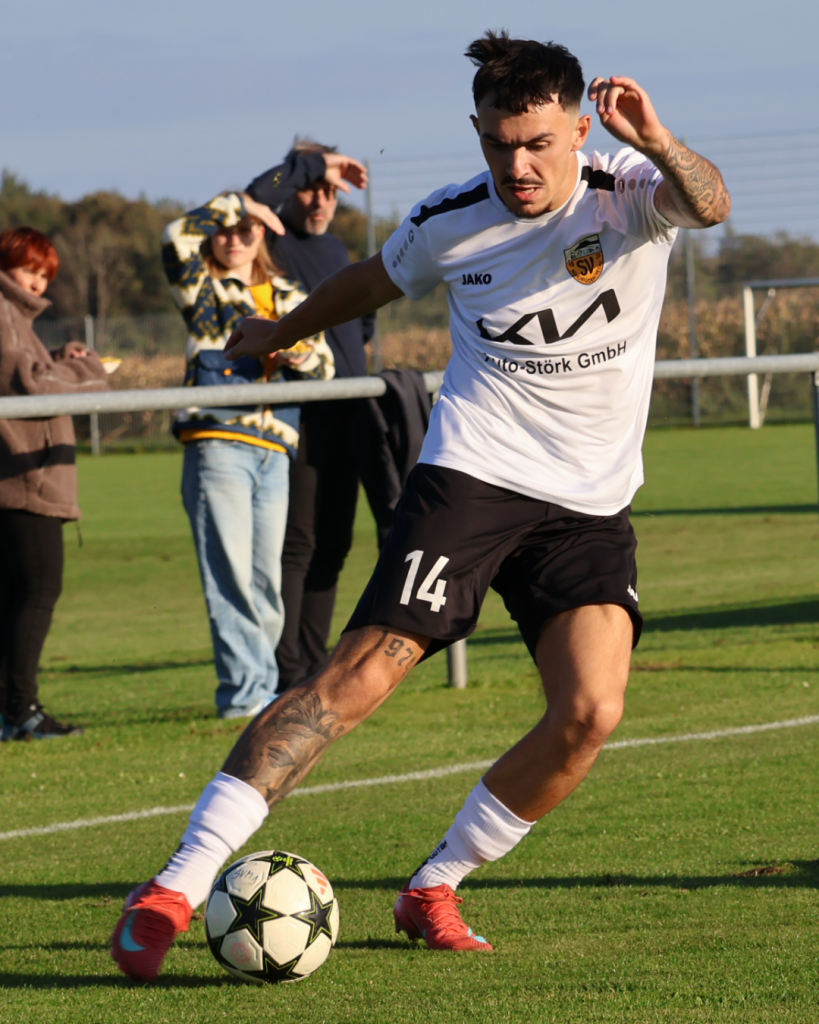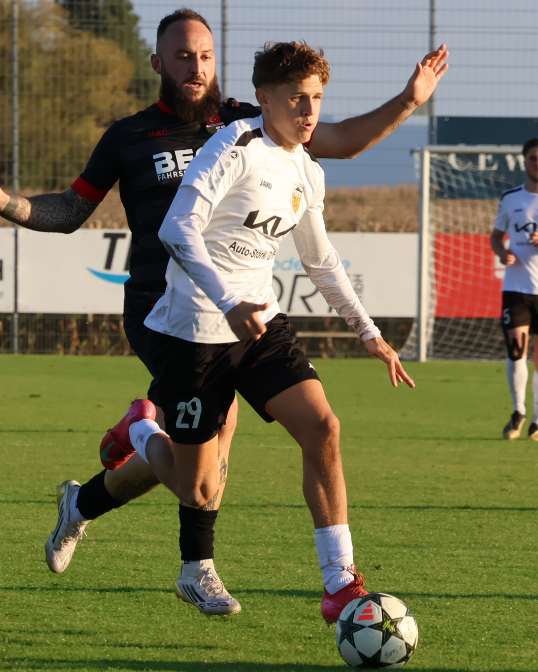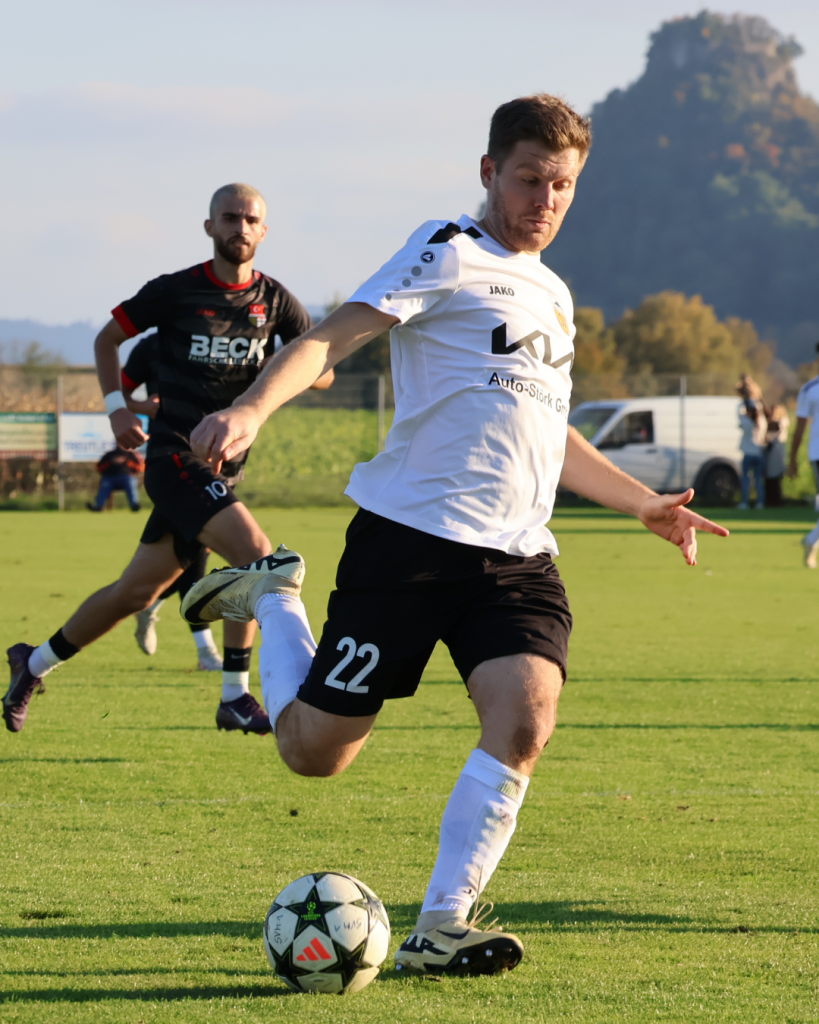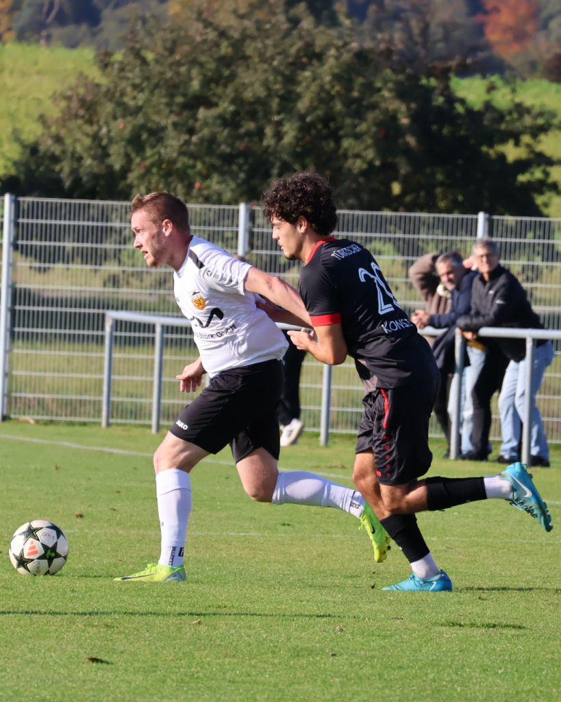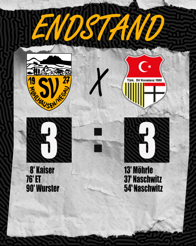 In der Anfangsphase versuchten beide Mannschaften, sich erstmal über lange Bälle Sicherheit zu holen und die zweiten Bälle waren entsprechend umkämpft. Nach einem langen Abschlag von Heizmann tauchte Uhler frei vor dem Gästetorwart auf und bediente Kaiser, der keine Probleme hatte einzuschieben. Die Führung hielt nicht lange an. Eine scharf getretene Ecke in Richtung Tor musste von Möhrle nur noch touchiert werden, um im langen Eck zu landen. Es folgten umkämpfte Minuten mit intensiven Zweikämpfen, in denen zwei gute sortierte Defensiven dafür sorgten, dass sich die Stürmer lange die Zähne ausbissen. Ein guten ausgespielter Angriff über die rechte Offensivseite des Türk. SV wurde von Konate vorangetrieben, der Naschwitz bediente. Nachdem dieser Torhüter Heizmann überwinden konnte, ging der SV Mühlhausen mit einem 1:2 in die Halbzeit. Eine umkämpfte erste Halbzeit, in der vor allem beide Defensivreihen viele Luftzweikämpfe zu führen hatten. Den besseren Start nach der Pause erwischten wieder die Gäste. Der agile Konate konnte sich wieder auf der rechten Seite durchsetzen und Naschwitz bedienen. Der schob aus knapp 14 Metern ins lange Eck ein. Mühlhausen versuchte nochmal mit vollem Risiko alles nach vorne zu werfen. Es folgte eine Phase mit vielen Fouls, Nickligkeiten und auch Beleidigungen aus der untersten Schublade. In dem Chaos waren es immer wieder Standards von Gutacker, die für Gefahr vor dem Gästetor sorgten. Einer dieser Standards wurde nach einem Missverständnis von Möhrle über den eigenen Keeper verlängert. Nach einem Gerangel im Tor der Gäste, aus dem ein Mühlhausener den Ball schnell wieder zum Anstoß bringen wollte, wurde die gesamte Traube mit Gelb verwarnt. Einer der Spieler war der bereits Gelb verwarnte Karaqi, der dann die Ampelkarte erhielt. Mit elf gegen zehn begann der Sturmlauf der Mühlhausener in der Schlussviertelstunde. Die Belohnung kam spät. In der Nachspielzeit. Tim Labusch schaltete nach einer rausgefausteten Ecke am schnellsten, schoss den Ball scharf vors Tor, wo der Held des Tages aus Mühlhausener Sicht, Andrin Wurster, den Kopf nur noch hinhalten musste und das leistungsgerechte 3:3 perfekt machte.
