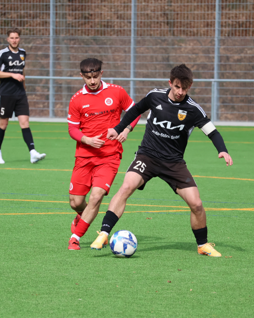 Zum Jahresauftakt stand für den SVM direkt ein schweres Auswärtsspiel bei der spielstarken Reserve des SC Pfullendorf an. Von Beginn an entwickelte sich eine schnelle und intensive Partie, in der die Gastgeber mehr Ballbesitz und Spielanteile hatten. Der SVM setzte auf hohes Pressing und versuchte, die Pfullendorfer früh unter Druck zu setzen. Diese spielten sich jedoch häufig sauber durch die Reihen hindurch, scheiterten aber spätestens an der gut organisierten SVM‑Abwehr. Nach vorne versuchte der SVM, mit schnellen Bällen Jannik Lattner und Marc Labusch in Szene zu setzen. Wirkliche Großchancen blieben jedoch aus, sodass es torlos in die Halbzeitpause ging.