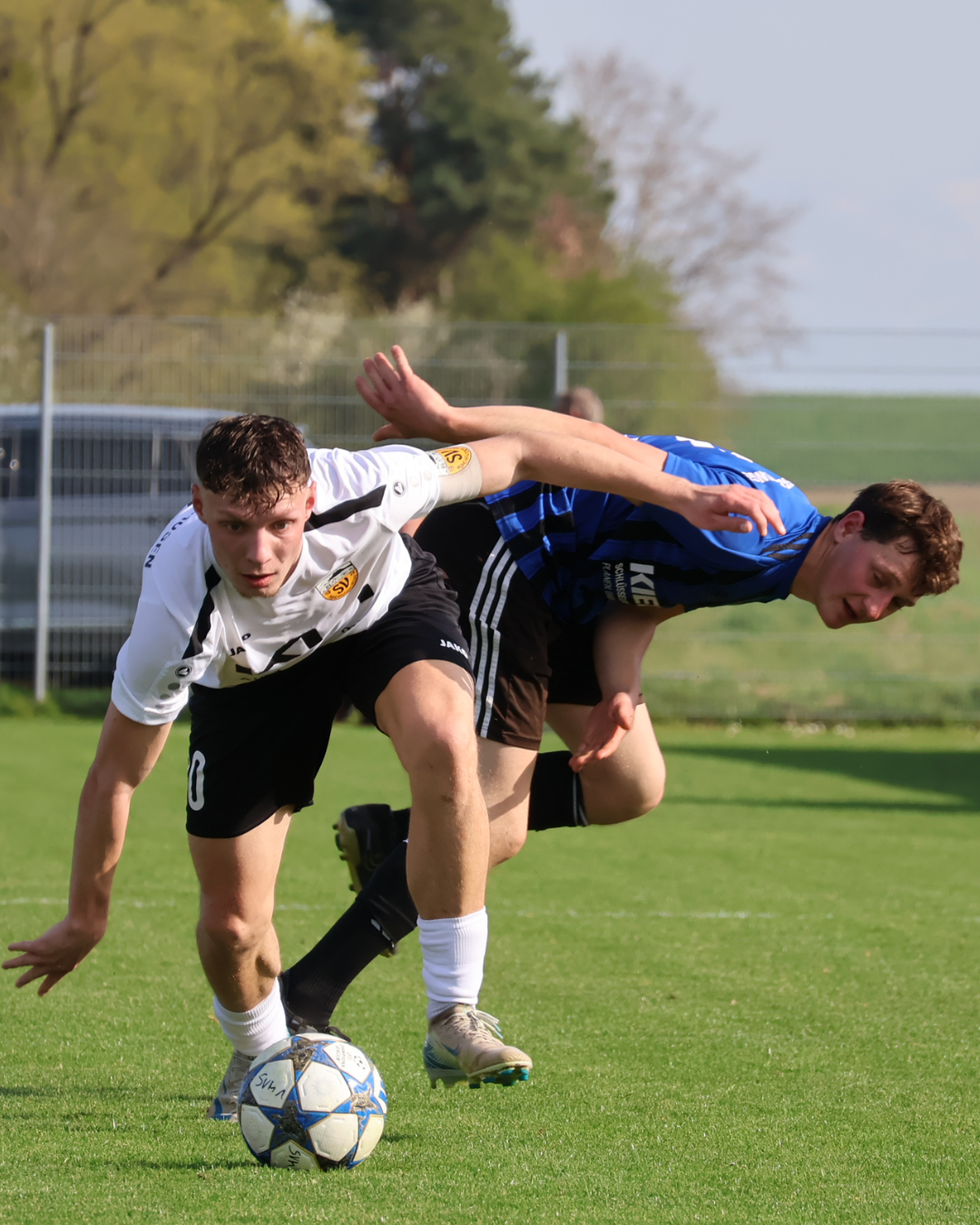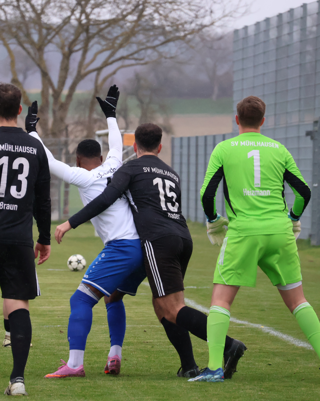 Die Hausherren begannen engagiert und versuchten früh, das Spiel zu kontrollieren. Doch die erste gefährliche Aktion gehörte den Gästen – und die saß direkt: In der 13. Minute fasste sich Eric Baier ein Herz und versenkte den Ball per sehenswertem Weitschuss unhaltbar für Torhüter Heizmann zur 0:1-Führung. Mühlhausen zeigte sich bemüht, doch in der Offensive fehlte zunächst die nötige Durchschlagskraft. Die Gäste hingegen blieben effizient: In der 36. Minute erhöhte Emre Mersinlioglu mit einem technisch anspruchsvollen Treffer auf 0:2.Nach dem Seitenwechsel änderte sich das Bild. Die Gastgeber kamen deutlich besser ins Spiel und erspielten sich erste klare Chancen. Der Lohn folgte in der 62. Minute, als Manuel Gutacker einen Foulelfmeter zum 1:2 verwandelte. Der Ausgleich ließ nicht lange auf sich warten: Nach einem Freistoß landete der Ball vor den Füßen von Marc Labusch, der gedankenschnell reagierte und zum verdienten 2:2 einschob. In der Schlussphase entwickelte sich ein offenes Spiel mit Chancen auf beiden Seiten, doch ein weiterer Treffer wollte keinem Team mehr gelingen. So blieb es bei einem leistungsgerechten Unentschieden, das vor allem den Kampfgeist der Mühlhausener unterstreicht